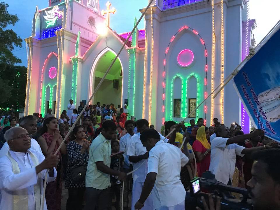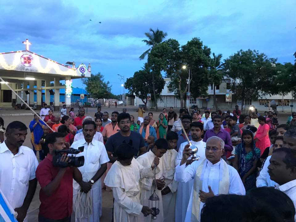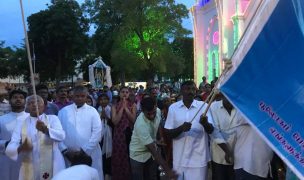 Sixth day novena Rev. Fr. S. Sebastin from Parish priest of Budalurhoisted novena Flag and celebrated the Holy Mass. He preached on the theme of “Mother Mary-Gate of Heaven “, Priests from vicariate have co-celebrated the Mass. Today’s mass sponsored by the devotees of Madurai, Pudukottai, Sivagangai and Dundigal and People from various places attended the Mass and got the blessings by the powerful intercession of Poondi Madha.